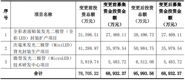 同时,6.89亿元募集资金的增资对象也将由浙江瑞丰改为瑞华光电,同样用于Mini/Micro LED、全彩LED封装扩产三大项目的实施。资料显示,瑞华光电主营业务的产品主要包括光电子器件、电子元器件和半导体照明器件等。